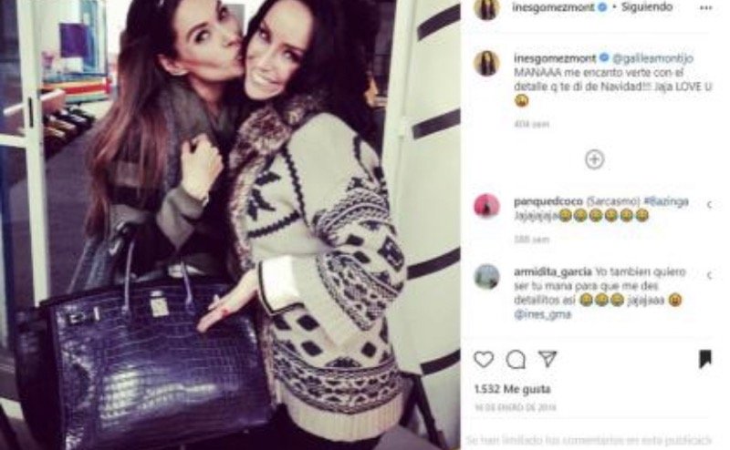 Según una publicación de Inés Gómez Mont que hizo en Instagram en enero de 2014, ella le obsequió a Galilea Montijo un bolso de piel de cocodrilo Birkin 35 de la marca francesa Hermès: "¡Mana, me encantó verte con el detalle que te di de Navidad! Ja ja", escribió la conductora que hoy es considerada prófuga de la justicia mexicana. Según la tienda en línea Farfetch, este accesorio tiene un costo de 121 mil dólares.