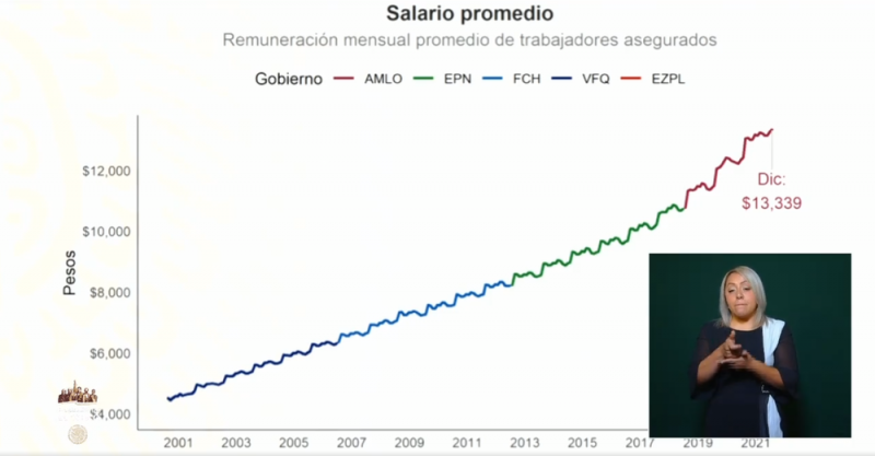 «El salario promedio de esto que se acaba de presentar sigue aumentando, en diciembre fue de 13 mil 339 pesos mensuales«, comentó.