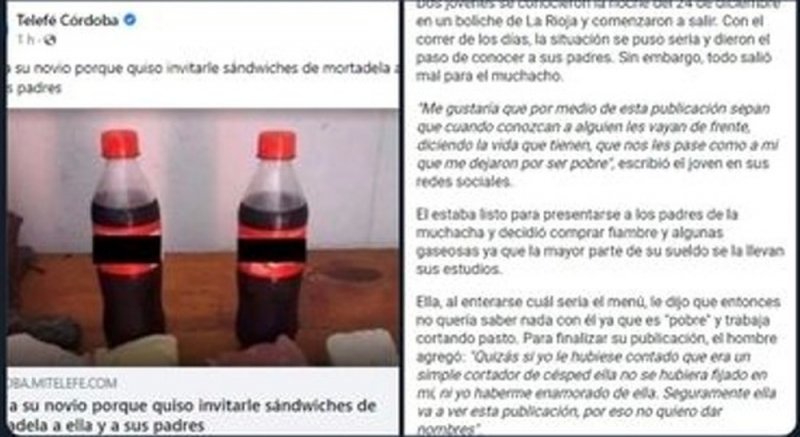 El diario Crónica del país recupera su testimonio del joven en redes sociales, en el cual manifiesta que el motivo de su rompimiento fue prepara unas tortas (sándwiches) de mortadela, un embutido que tiene la principal característica de ser barato.