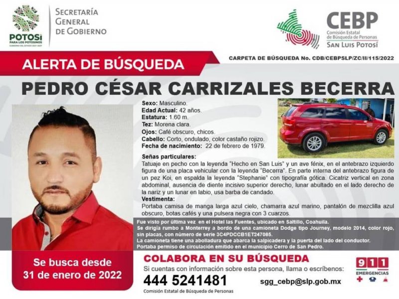 Por esta razón se emitió una alerta de búsqueda por parte de la Comisión Estatal para la Búsqueda de Personas Desaparecidas del Estado de San Luis Potosí.