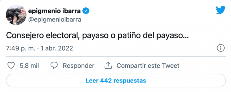 “Consejero electoral, payaso o patiño del payaso”, escribió el consejero del INE, quien al igual que el su homólogo en el INE, Lorenzo Córdova ha sido muy cuestionado.