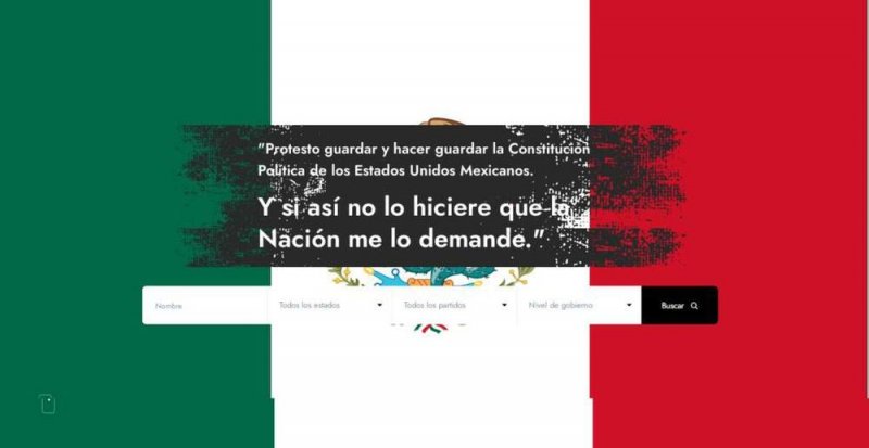 En la página principal del sitio de internet, aparece una bandera de México y encima de ella la frase que pronuncian los representantes populares al rendir protesta a un cargo.