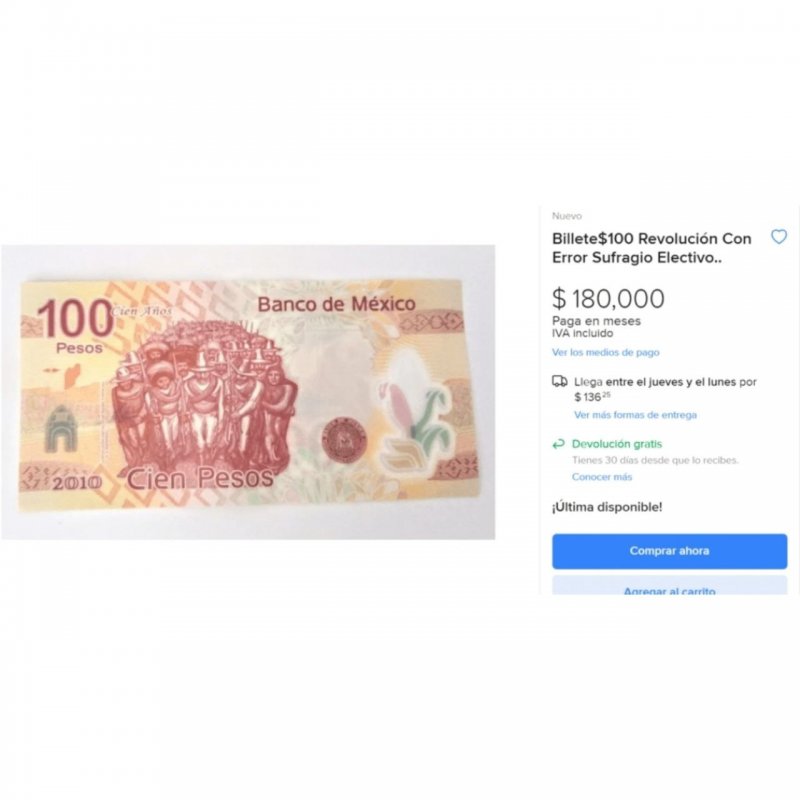 En la plataforma Mercado Libre se pueden encontrar diversas publicaciones de venta de este billete con precios desde los 600 hasta los 180 mil pesos.