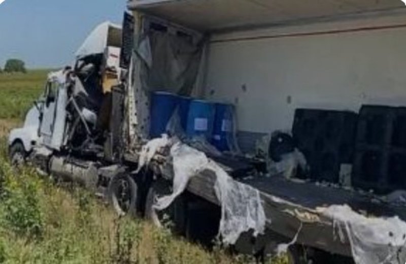 Cabe recordar que un trailer procedente de Querétaro y con rumbo a Texas, Estados Unidos, chocó dejando evidente el macabro contenido.