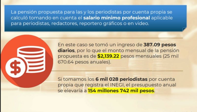 Para el cálculo de dicha pensión se tomó con base en el salario mínimo profesional aplicable para periodistas, redactores y reporteros gráficos o en video.