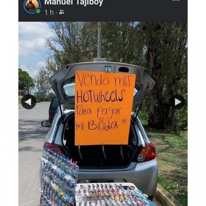 El usuario de Facebook Manuel Tajiboy, coleccionista de carritos, compartió la imagen que dice: "Vendo mis Hot Wheels para pagar mi boda".