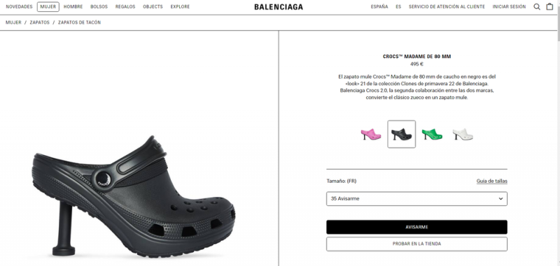 Los irreverentes Crocs de tacón son el modelo “Madame” y pertenece a la colección primavera 2022 de la firma. “Balenciaga Crocs 2.0, la segunda colaboración entre las dos marcas, convierte el clásico zueco en un zapato mule (destalonado)”, describen en la web del producto.
