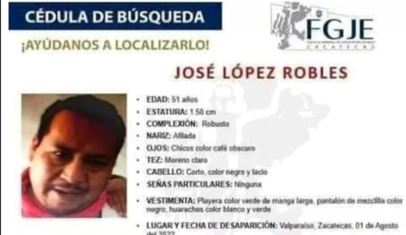 En tanto, la Fiscalía de Zacatecas ya emitió una ficha de búsqueda, en la cual se detallan algunas características físicas del papá de Yuawi, quien tiene 51 años de edad.