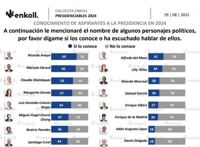 Por otra parte, Enkoll ubica a los tres candidatos más populares a la presidencia de la República, resultando Sheinbaum, el hijo de Colosio y Ricardo Anaya.