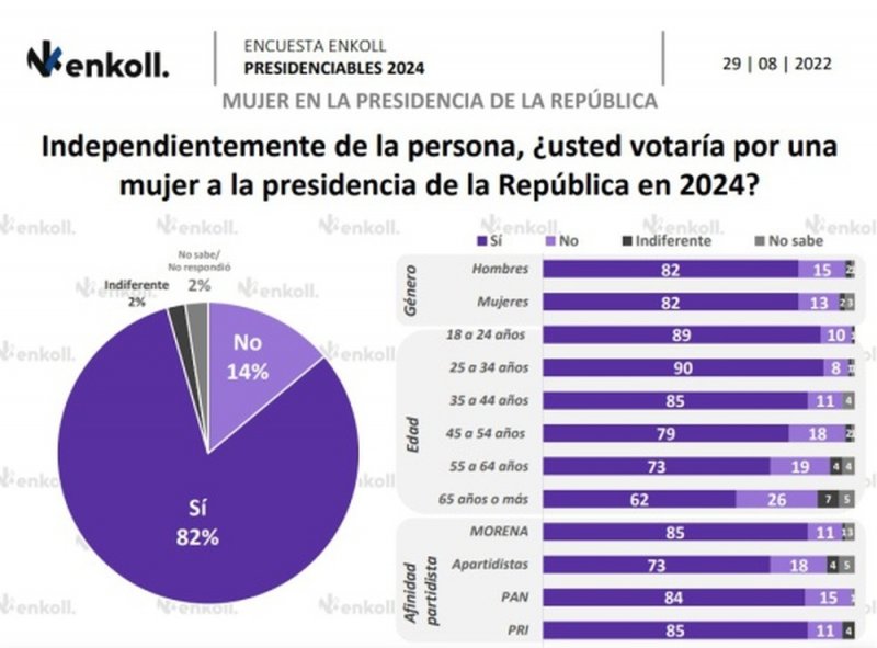 Además, el 82% de los mexicanos votaría por una presidenta.