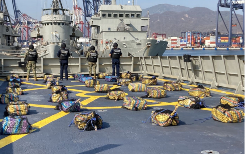 Más de dos toneladas de cocaína fueron decomisadas por la Secretaría de Marina-Armada de México frente a las costas de Colima, uno de los pasos más importantes que el crimen organizado utiliza para llevar sustancias ilegales hacia Estados Unidos.