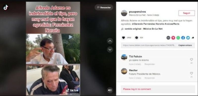 El fragmento de la entrevista fue emitido en la cuenta de TikTok @psuspensivos, que se describe en la plataforma como un medio de comunicación independiente.