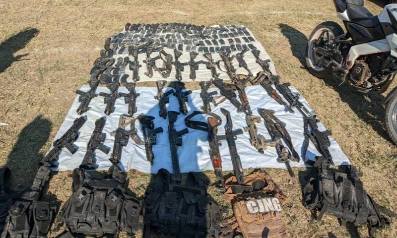 A los detenidos se les aseguraron, 148 cargadores, 28 armas largas, 18 chalecos tácticos, 14 placas balísticas, cuatro vehículos, dos motocicletas, un lanzagranadas, un aditamento para arma corta y cartuchos de diferentes calibres.