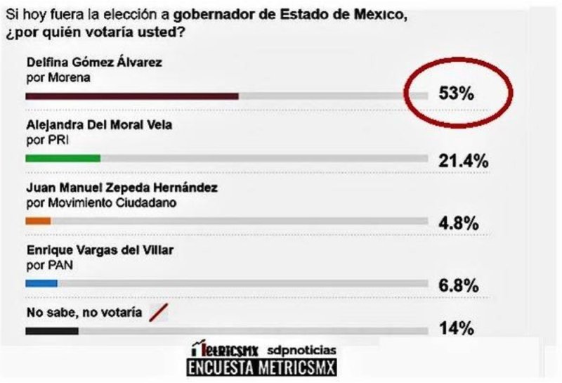 –«Un apabullante 53% mencionó lo haría por Delfina Gómez Álvarez por Morena», indica el portal.