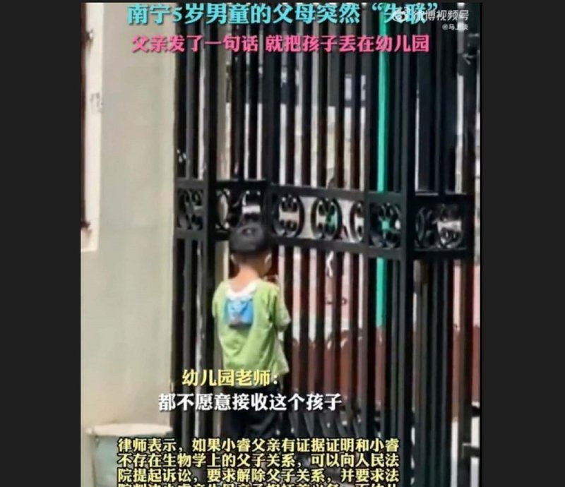 El cruel padre de un inocente niño de cinco años lo abandonó en su kínder en China luego de que descubrió por una prueba de paternidad que el pequeño no era su hijo biológico.