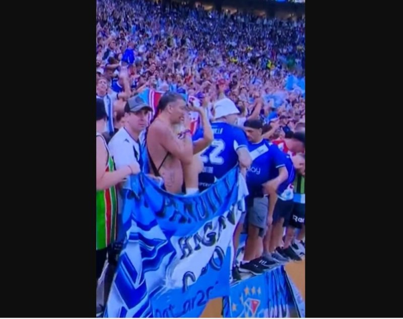 Entonces Gonzalo Montiel marcó el penalti decisivo que coronaba a Argentina como campeona del mundo, y ahí fue justo cuando la bella mujer decidió quitarse la parte posterior de su atuendo, dejando al descubierto sus pechos en un atrevido topless que robó la atención del mundo entero, pues fue captada por las cámaras y rompió con las estrictas reglas de vestimenta de Qatar.
