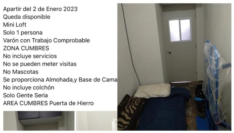 Pero eso no es todo, ya que la renta de este inmueble también estaba sujeta a que el o la interesada cumpliera con una serie de requisitos que iban desde mudarse solo, no tener mascotas y aceptar o recibir visitas dentro del cuarto.