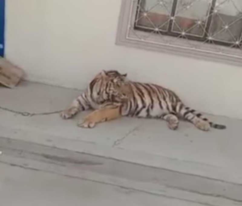 En el municipio de San Francisco del Rincón en el estado de Guanajuato se observó un tigre en plena vía pública.