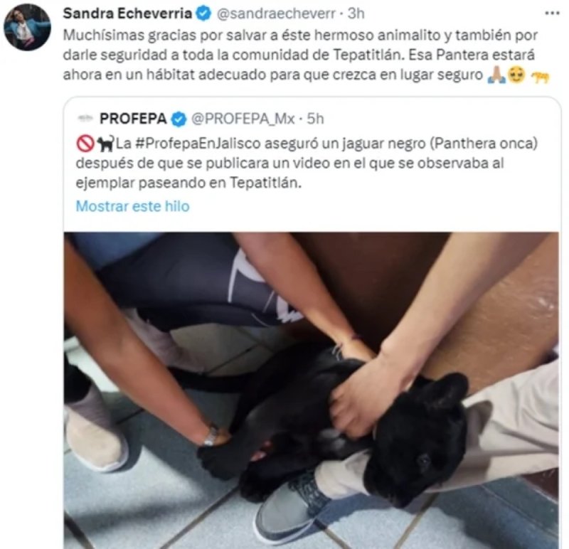 ??????????La #ProfepaEnJalisco aseguró un jaguar negro (Panthera onca) después de que se publicara un video en el que se observaba al ejemplar paseando en Tepatitlán. pic.twitter.com/dUv77SrGST
