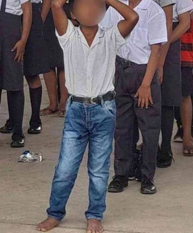 El pequeño, de 9 años, es un caso ejemplar de la terrible situación que viven algunas familias y su historia se dio a conocer por medio de redes sociales, ya que en unas fotos se le observa al niño descalzo en la formación y con el uniforme incompleto.