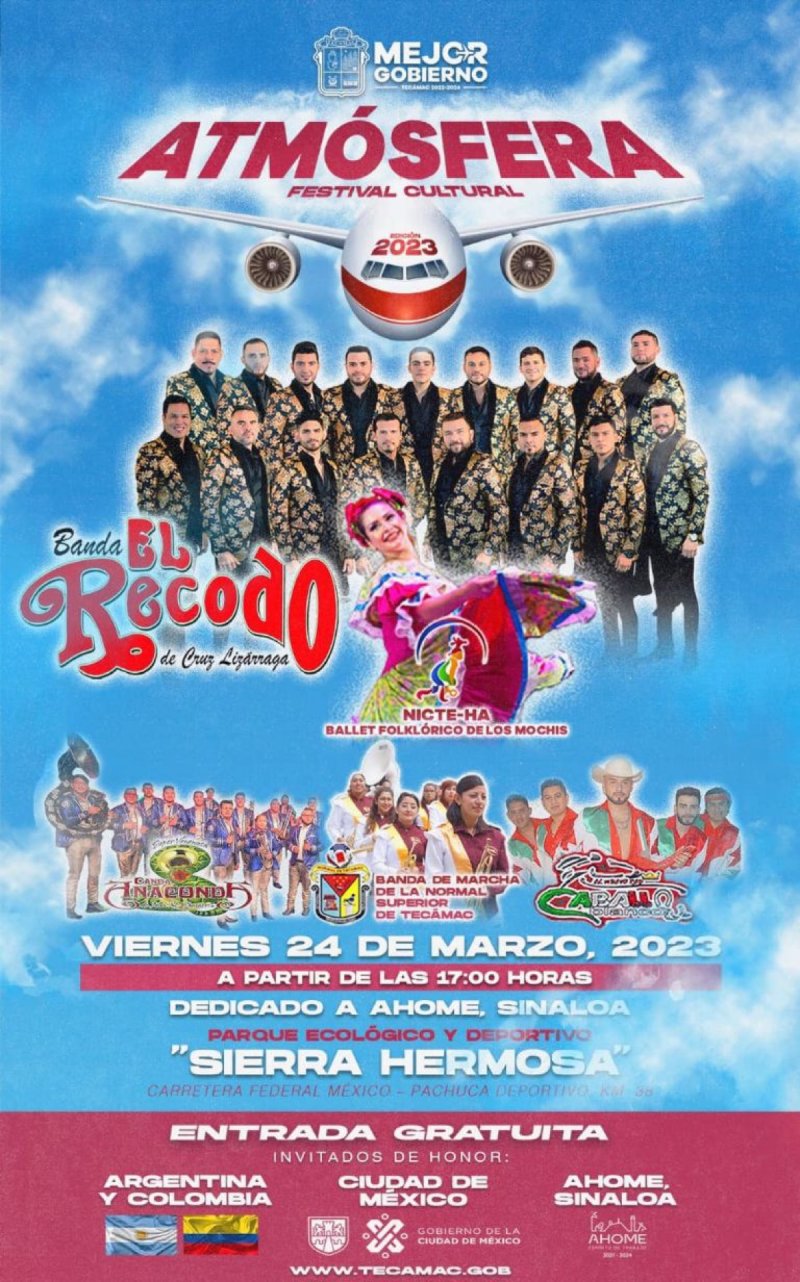"Más de 60 grupos, bandas, ballets y artistas tecamaquenses participarán también en nuestro Festival #atmósfera2023, en los escenarios de Atmósfera Cultural y Atmósfera Rock, exponiendo lo mejor de nuestra riqueza cultural. Además tendremos exposición de libros, exposición de la oferta vocacional para quienes terminan la educación media superior y por primera ocasión Atmósfera Kids, un espacio para las niñas y los niños".