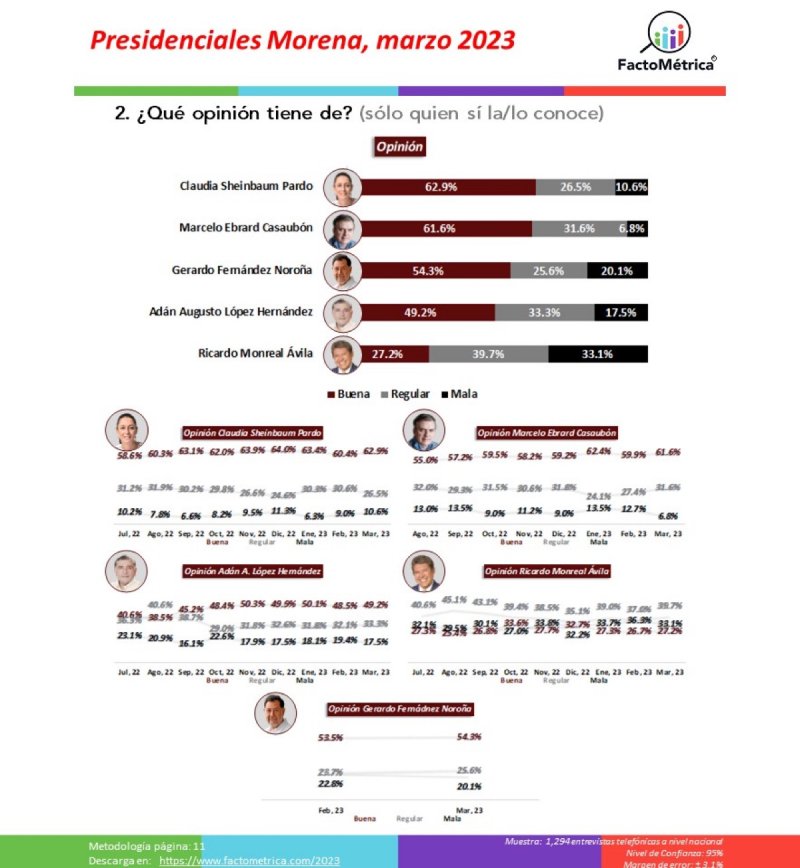 La encuesta de FactoMétrica es consistente con las que se han dado a conocer durante todo 2023, donde Sheinbaum es la clara favorita y puntera. A pesar del ascenso de Ebrard en algunas encuestas, parece que no ha logrado ganar suficiente terreno para desafiar a la actual Jefa de Gobierno.