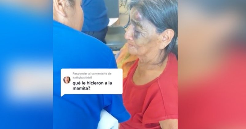 Una usuaria identificada como Marce publicó las desgarradoras imágenes en su cuenta de TikTok, donde puede verse a la señora con moretones en la cara.