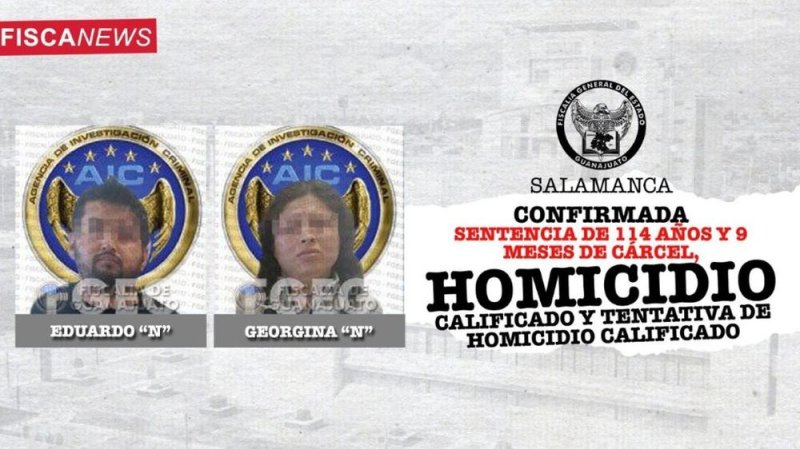 Eduardo y Georgina “N”, quienes el 19 de septiembre de 2021 realizaron un atentado con bomba en el bar “Barra 1604” de la ciudad de Salamanca, Guanajuato, fueron sentenciados a 114 años y 9 meses de prisión, informó la Fiscalía General de Justicia del Estado de Guanajuato.