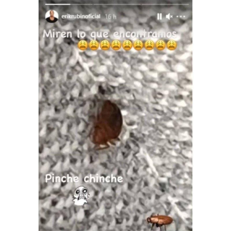 Después de realizar limpieza exhaustiva en su lujosa mansión, el intérprete de "Con todos menos conmigo" y la conductora del matutino de Televisa destaparon que la verdadera causa era que tenían chinches en su casa. Erik Rubín subió una fotografía mostrando al culpable de sus ronchas.
