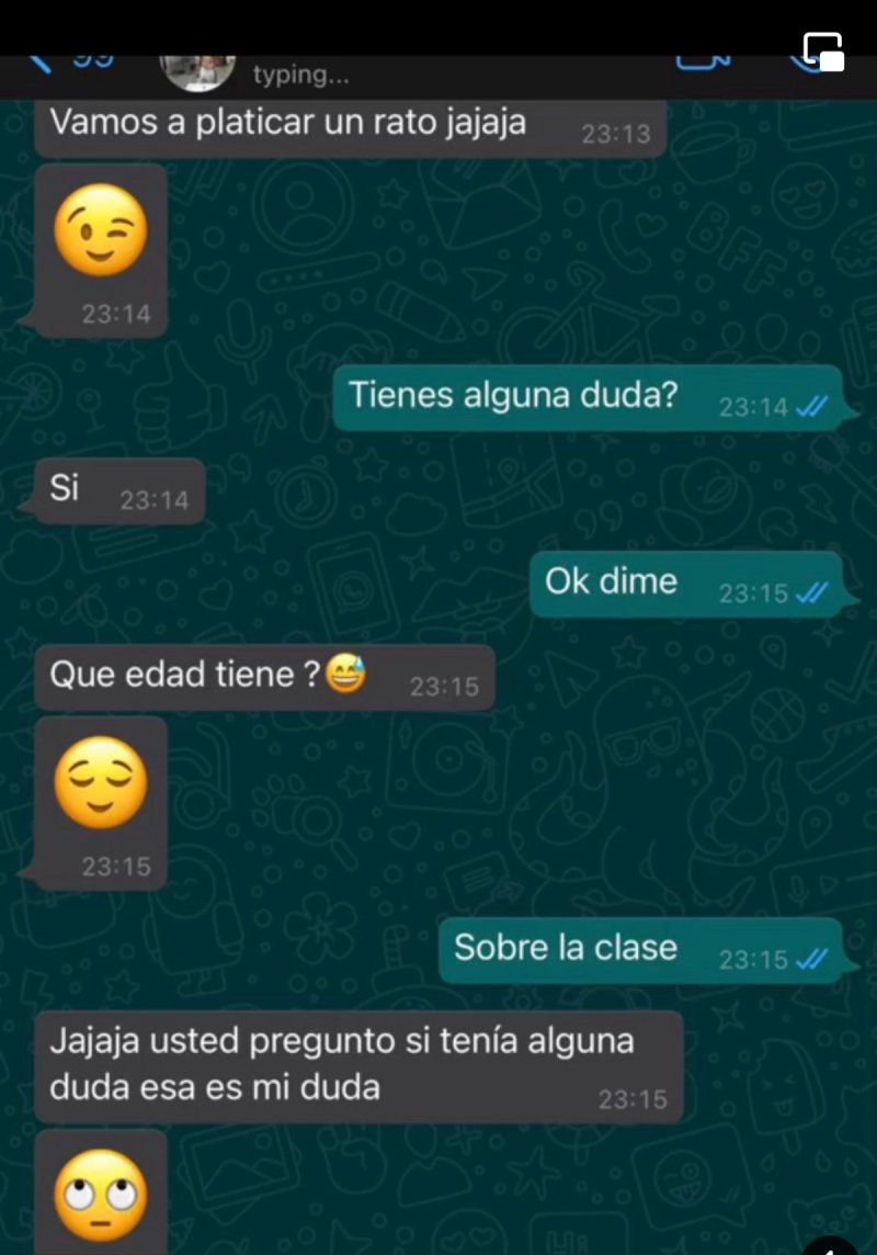 Además, Etzane, como ha sido identificada, no dudó en exhibir a algunos padres de sus alumnos que le mandan mensaje, tomándose la libertad de preguntarle cosas o hablar ciertos temas que no tienen relación alguna con las tareas de sus hijos.