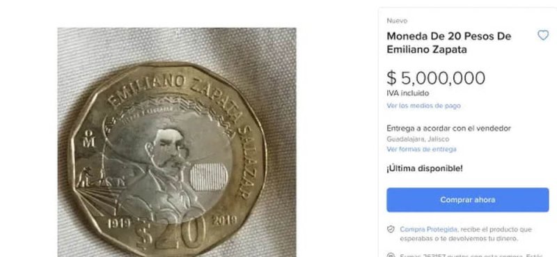 El desmesurado precio ha llamado la atención de los coleccionistas, que no dan crédito del alto precio que ha alcanzado la moneda de Emiliano Zapata. Recuerda que, si tienes una moneda difícil de conseguir y consideras que podría tener un gran valor, es recomendable que consultes a un experto en numismática que pueda orientarte al respecto.