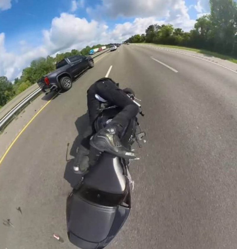 Momentos de terror vivió un motociclista que circulaba a exceso de velocidad luego de que chocara con una camioneta, quedara inconsciente y lo arrastrara un tráiler en una carretera de Panama City, Florida, Estados Unidos.