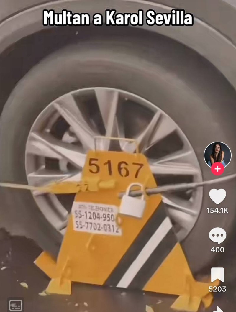 Y esta vez le tocó a Karol Sevilla, a quien le colocaron una araña en la llanta de su auto presuntamente por no pagar el parquímetro a tiempo.