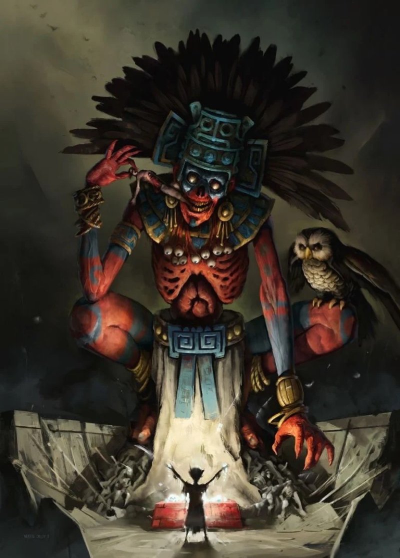 Mictlantecuhtli es conocido como el "Señor de los Muertos" o el "Dios de los Inframundos" en la mitología mexica. Gobernaba el Mictlán, el lugar al que viajaban las almas de los fallecidos en su camino hacia el más allá. Este inframundo era un reino oscuro y desafiante, lleno de obstáculos y pruebas que las almas debían superar para alcanzar su descanso eterno. La deidad Mictlantecuhtli era la encargada dejuzgar a las almas y determinar su destino en el más allá.