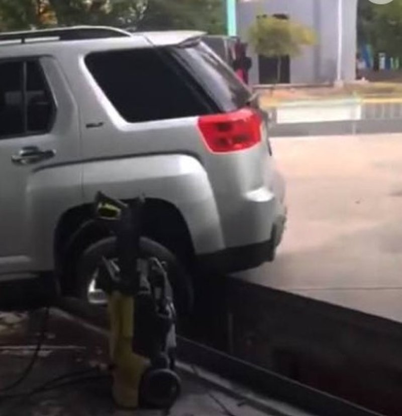 Los hechos, al parecer, sucedieron en un taller de alineación y balanceo, aunque hay quien dice que fue en un autolavado por la hidrolavadora que está a un costado de la camioneta y fue videograbado. “¿Cómo sucedió esto?”, se pregunta el afligido conductor que se pasea de un lado a otro.