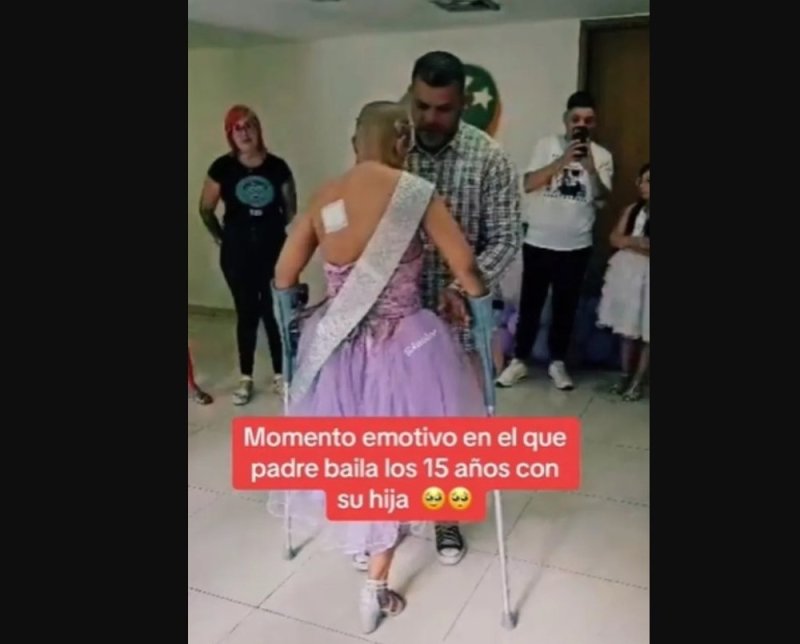 Por medio de TikTok se volvió viral el conmovedor video de la fiesta de quinceaños de una joven con cáncer, ya que su padre la cargo para poder bailar el vals.