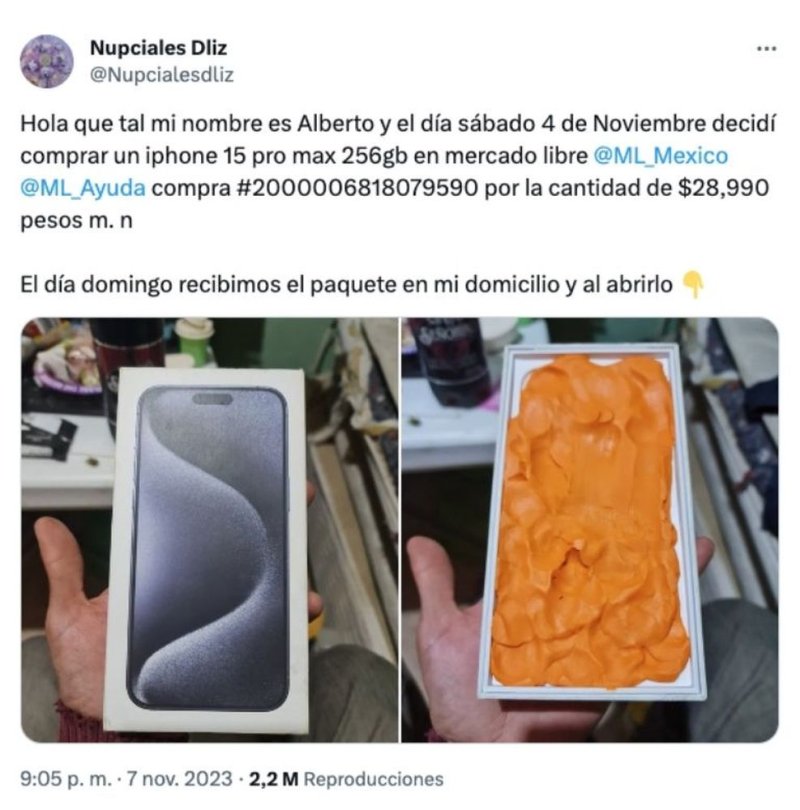 Compró un iPhone 15 Pro Max y le llegó una caja de plastilina