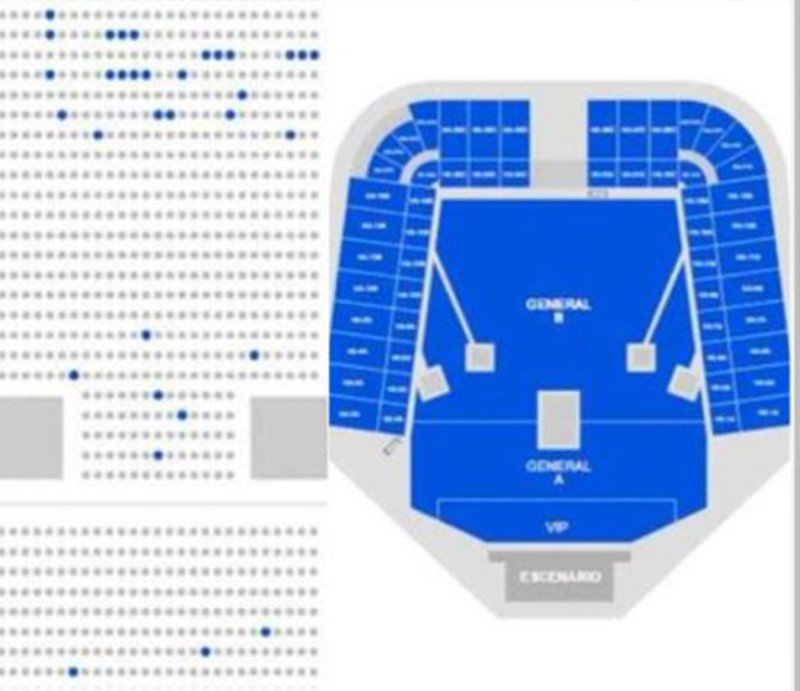 En el mapa de Ticketmaster se pueden apreciar muchas zonas vacías a los laterales del recinto que tiene una capacidad de 65 mil personas, incluso la parte baja del Foro Sol tiene boletos disponibles para quien desee comprarlos a última hora.