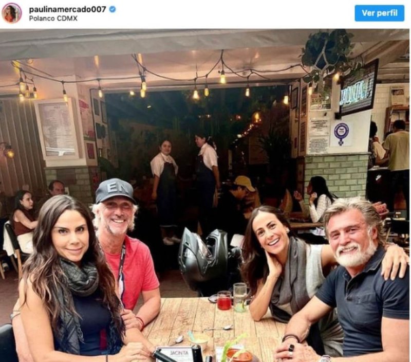 La postal fue compartida por Paulina Mercado en su cuenta de Instagram. En ésta se ve a Paola Rojas junto a su novio, quien la abraza por la cintura mientras posan y junto a ellos la también conductora junto a su pareja, el actor Juan Soler, todo mientras disfrutan de una comida en Polanco el pasado fin de semana.