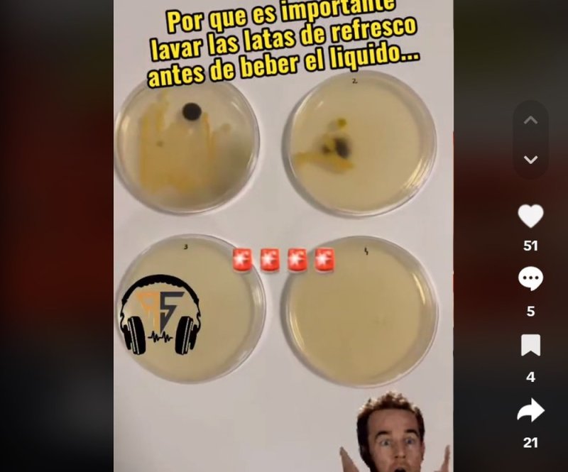 El creador de contenido logró resumir, en menos de un minuto, todo el proceso para cultivar la superficie de los objetos y descubrir si tiene hongos y bacterias. Además de esto, el internauta lavó otra para ver si esto sí ayuda. Después de todo, el científico confirmó que sí hay hongos y bacterias en las latas.