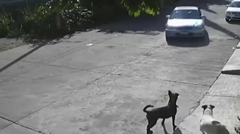 De acuerdo con medios locales, los hechos ocurrieron en pasado 12 de diciembre, cuando un hombre transitaba en su auto y en cuestión de segundos intenta atropellar a los dos perros que se encontraban a un costado de la calle, pero reaccionaron rápido y se subieron a la banqueta.