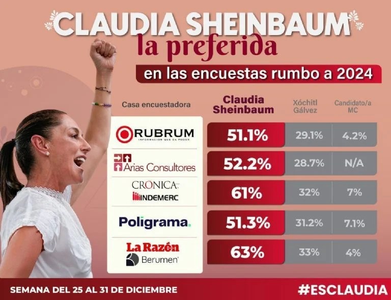 Claudia Sheinbaum inicia el 2024 ARRASANDO en todas las encuestas