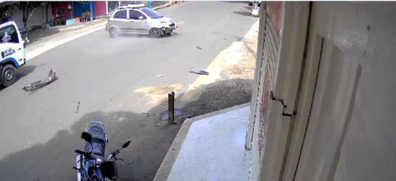 Un joven motociclista sufrió la amputación de su pierna derecha al impactar con un vehículo que aparentemente cruzaba la calle desde un punto de estacionamiento en sentido horizontal en un dramático incidente capturado por una cámara de seguridad durante la mañana de 1 de enero, en las calles de El Doncello, al sur de Colombia.