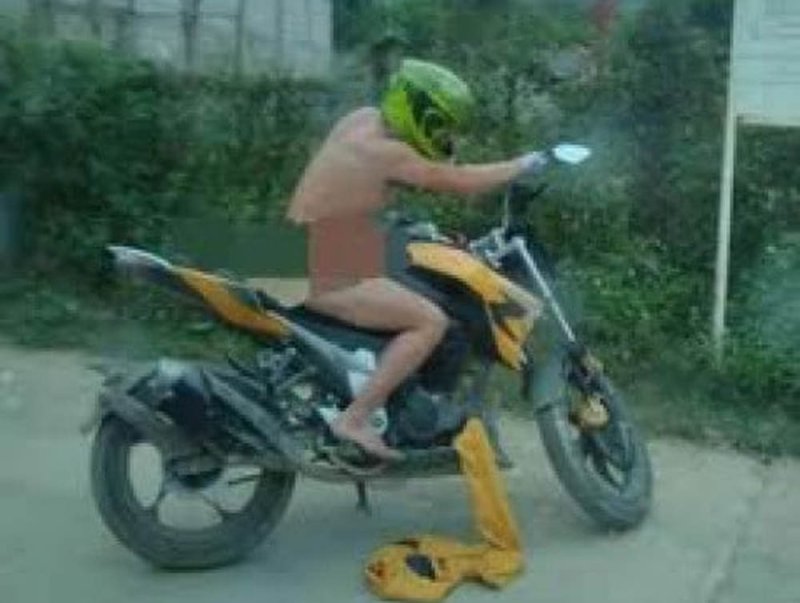 Posteriormente, lo desnudaron y lo dejaron abandonado en su motocicleta con las manos atadas con cinta gris en su unidad, imposibilitado de maniobrar la unidad de dos ruedas.