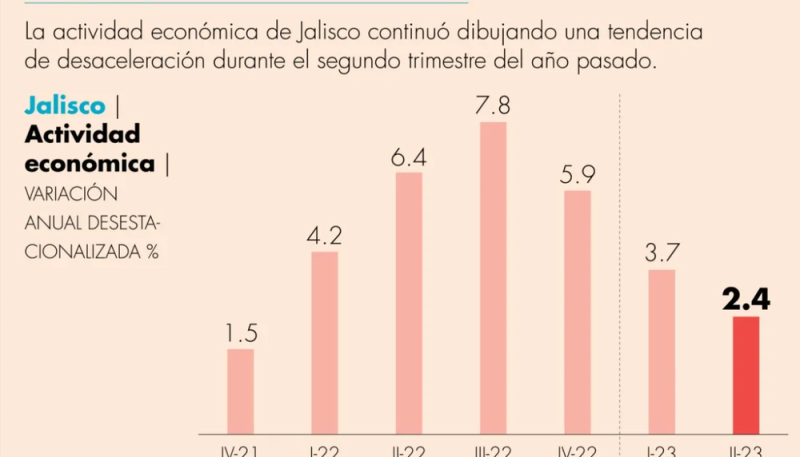Esta desaceleración que estamos viendo a nivel mundial va a tener una afectación en decisiones de inversión de algunas empresas que no querrán venir. Estamos viendo también el presupuesto federal que recibió Jalisco para este año que también tiene un impacto en el PIB. Es por eso que estamos previendo una reducción en el PIB de Jalisco con respecto al 2023 pero va a la par de lo que está pasando en el país", detalló.
