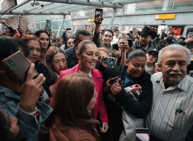 A su llegada, militantes y simpatizantes le sorprendieron con el sonido del mariachi interpretando la canción “Tequila”, y porras como "¡Claudia, amiga, Jalisco está contigo!" resonaron en el Aeropuerto Internacional de Guadalajara.