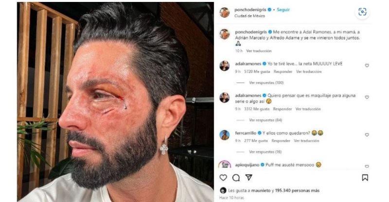 “Me encontré a Adal Ramones, a mi mamá, a Adrián Marcelo y Alfredo Adame y se me vinieron todos juntos” fue el texto que escribió Poncho de Nigris y de todas estas celebridades fue el extitular de “Otro Rollo” quien respondió y aseguró que él sí tiró golpes, pero “muy leve”, no obstante, en otro comentario dejó la comedia a un lado y escribió que le gustaría pensar que todo se trata de maquillaje para algún proyecto del influencer y, aunque no recibió respuesta, pero todo parece indicar que su teoría fue cierta pues el exparticipante de “La Casa de los Famosos” dejó ver a través de sus redes sociales que pasó todo el día realizando distintas grabaciones.