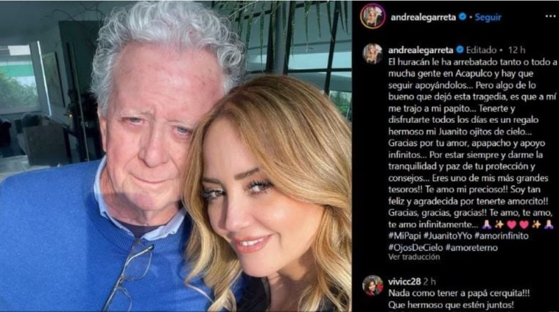 Si bien, la propia Andrea reconoció que el paso del desastre natural había tenido un fuerte impacto para todos los acapulqueños, la famosa reveló que ella se sentía agradecida porque puede disfrutar al máximo de su padre, a quien le agradeció por estar con ella y siempre brindarle su “apapacho”. Finalmente, la estrella de televisión concluyó su mensaje revelando el gran amor que siente hacia el hombre que le dio la vida.