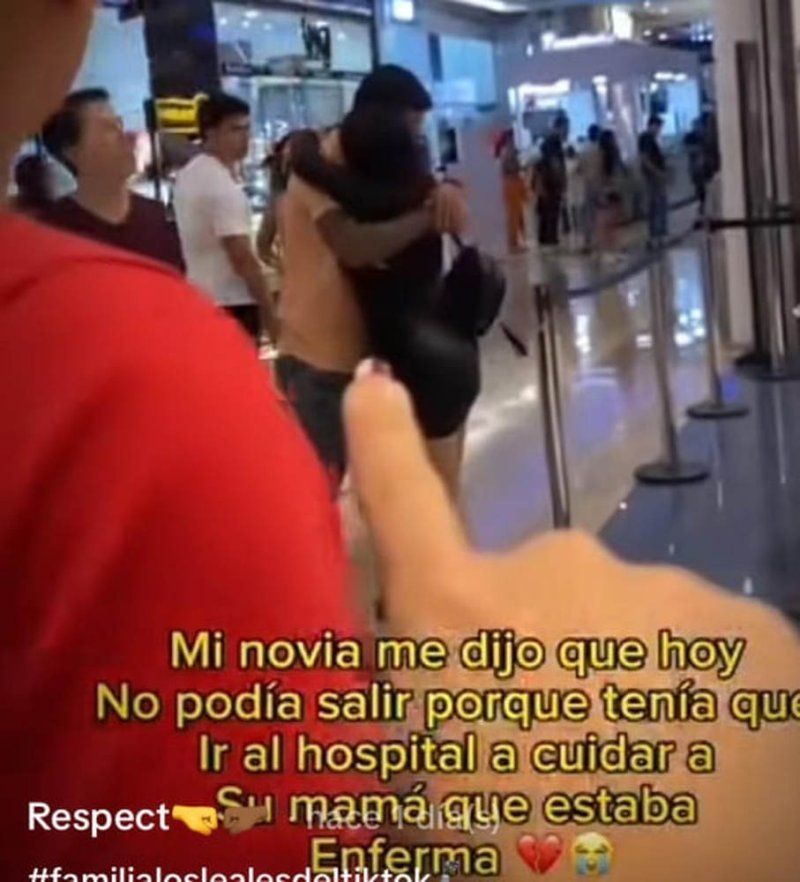 Un hombre cachó a su novia infiel en el cine, luego de que esta lo engañó y le dijo que no podía salir con él porque tenía que ir al hospital a cuidar a su mamá que estaba enferma; el video es viral en redes sociales.