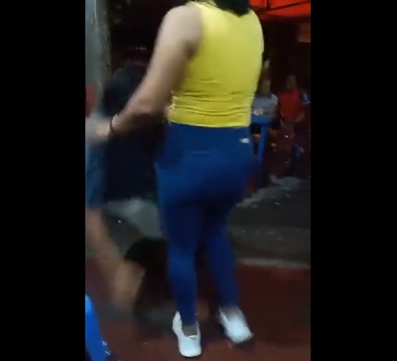 En el video se observa a un hombre que se encuentra bailando acompañado de una mujer en lo que parece ser una fiesta local; el masculino vestía de una camisa color azul y unos shorts en color gris, mientras la dama estaba con una blusa en color amarillo y unos pantalones mezclilla en color azul.